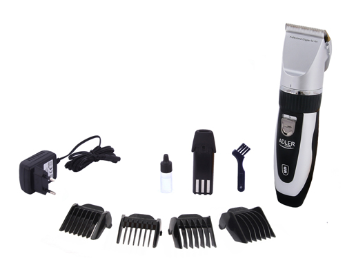 Titankopf mit Keramikklinge | Leistungsstarker und leiser Motor: 35W | Präzise Haarschnittanpassung im Ring | 4 Kammaufsätze: 3, 6, 9, 12 mm | Kabel- oder kabelloser Betrieb | Set enthält zusätzlichen Akku, Öl, Bürste und Ladegerät | EAN: 5908256836150