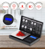 max. Kapazität/Teilung: 100 g/0,01g | Einheiten: g, gn, ozt, oz, dwt, ct, T | LCD-Bildschirm mit Hintergrundbeleuchtung | Automatische Abschaltung nach 3min | Plastikhülle | Hochpräziser DMS-Sensor | Stromversorgung: 2×1,5V (AAA) | EAN: 5903887807180