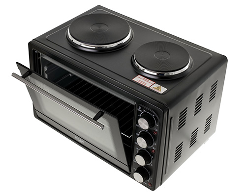 Fassungsvermögen: 36L | Durchmesser der Heizplatten: 185mm und 155mm | Maximale Backofenleistung: 2500W | Backofen-Nennleistung: 1500W | Temperaturkontrolle: von 90°C bis 230°C | Heizelemente aus Edelstahl | Timer bis zu 60 Minuten | Drehspieß | EAN: 5902934834742