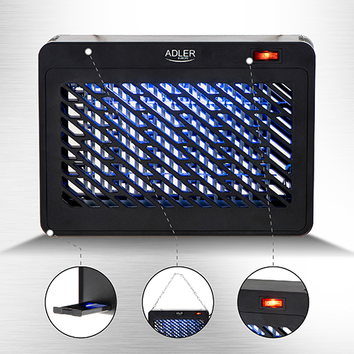 - Lockt mit UV-Licht, tötet Insekten mit Hochspannung, speichert tote Insekten zur Entsorgung