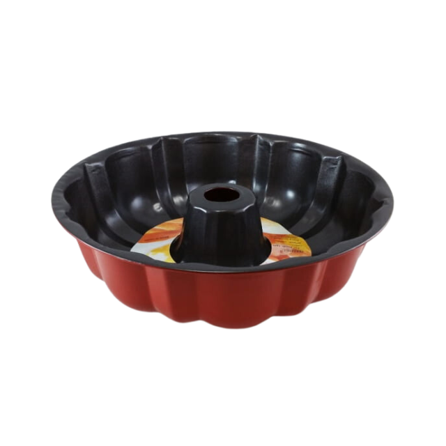 Runde Form aus Metall für Kuchen | Abmessungen: 27×8 cm | Antihaftbeschichtung | Farbe: rot-schwarz