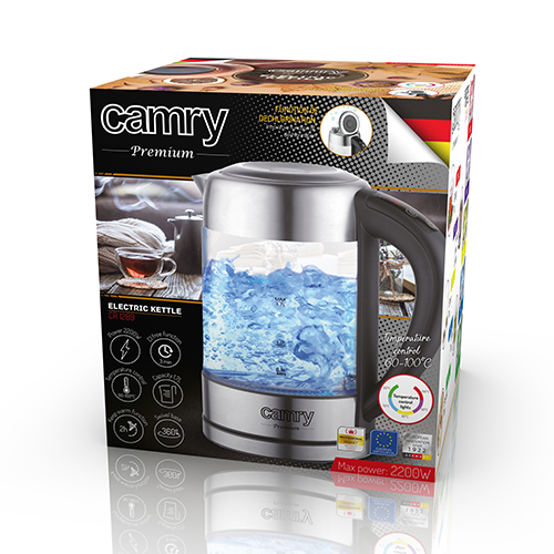 Temperaturkontrolle: 60-100 °C im Griff | LCD-Display zur Anzeige der aktuellen Temperatur | Heizung aus hochwertigem Edelstahl SUS304 | Anti-Calcium-Filter | Überhitzungsschutz | 360° schwenkbarer Ständer | Fassungsvermögen: 1,7L | Leistung: 1850-2200W | Stromversorgung: 220-240V ~ 50 / 60Hz | EAN: 5902934835558