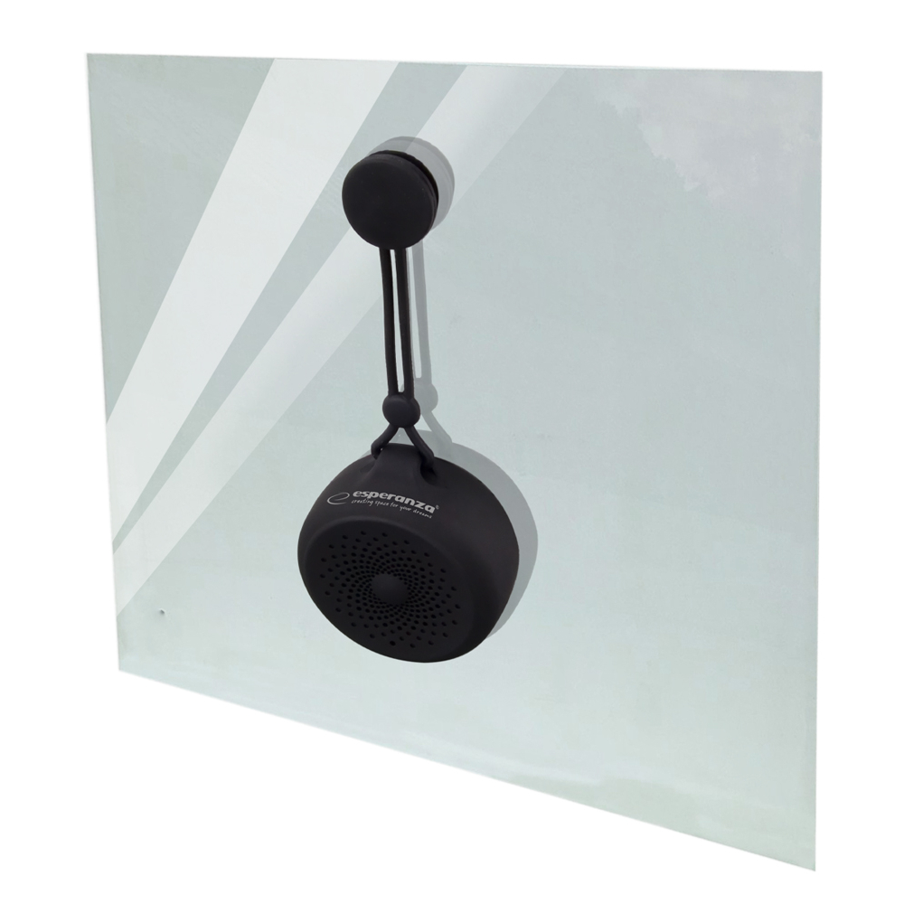 Wasserdichter, leichter Bluetooth-Lautsprecher. Mit einem eingebauten Silikonsauger kann er an Glas, Fliesen im Badezimmer oder anderen glatten Oberflächen befestigt werden. Das eingebaute Mikrofon ermöglicht das Telefonieren.