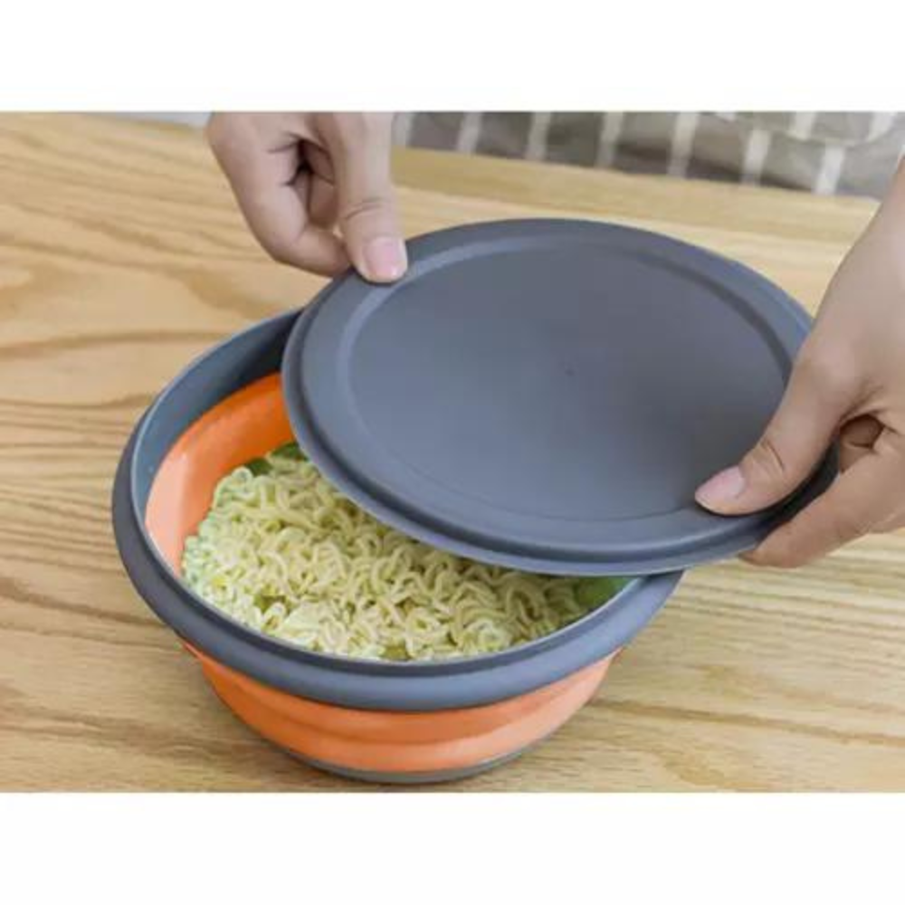 - SPEZIFIKATION – Farbe: grau-orange; Material: Silikon / Kunststoff; Betriebstemperatur von -10? bis zu 80?; Liter Fassungsvermögen: klein: 0,4 l, mittel: 0,85 l, groß: 1,65 l; Maße: aufgeklappt klein: 12 x 6,5 cm; gefaltet: 12 x 2,5 cm, ungefaltet mittel: 15 x 7,5; gefaltet 15 x 3,5 cm, ungefaltet groß: 19 x 8,5 cm; gefaltet 19 x 3,7 cm; Gewicht: 306 g; Gewicht in der Verpackung: 308 g.