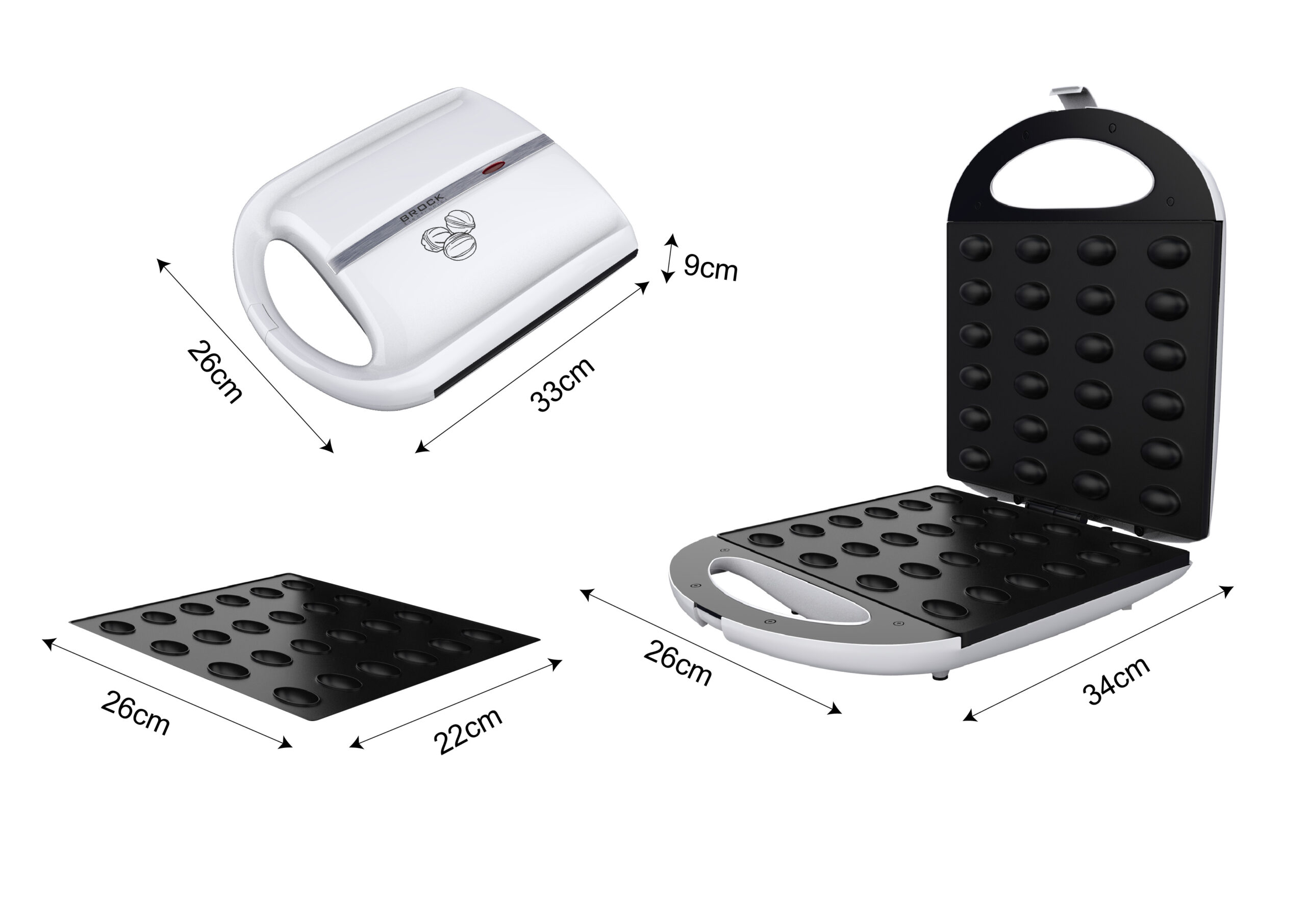 Nussbäcker | Für 24 Nüsschen in einem Backvorgang | Cool Touch Gehäuse | Antihaft-Oberfläche | Betriebs- und Bereitschaftsanzeige | Rutschfeste Füße | Leistung 1400W | EAN 4752131001291