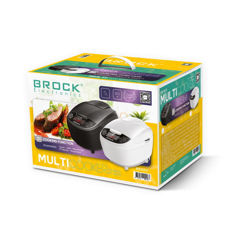 Volumen: 5L | Leistung: 860 W; 220-240 V, 50/60 Hz | Rote LED-Anzeige mit 51 Funktionen | 1,2 m Netzkabel, VDE-Stecker | Doppelseitiger Innentopf mit 1,32 mm Dicke sowie Antihaftbeschichtung | Warmhalten und verzögerter Start funktionieren bis zu 24 Stunden | Weißer Kunststoff + schwarzes Bedienfeld | Überhitzungsschutz | Zubehör: Löffel, Kelle, Messbecher, PP-Dampfgarer, Rezeptbuch | EAN 4752131001406