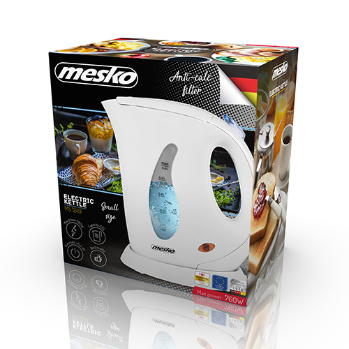 Max. Fassungsvermögen: 0,6L, min. 0,2L | Leistung: 760W | Große, helle Wasserstandsanzeige | Filter | Abschaltautomatik | Trockengehschutz | Kompakte Grundplatte mit Kabelaufbewahrung | Power-Licht | EAN: 5908256836433