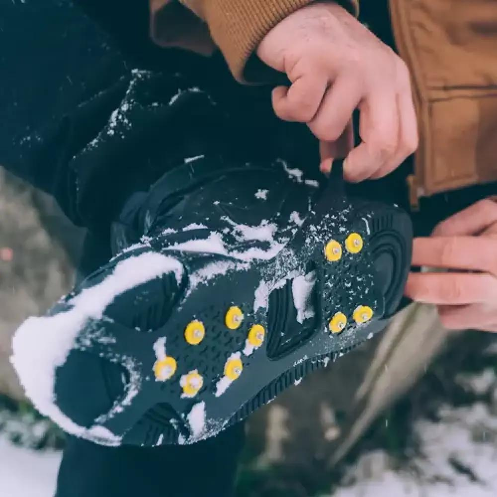 - ANTI-RUTSCH – elastische Überschuhe, ausgestattet mit Metallspikes, die sich perfekt für Wanderungen in Wäldern und Bergen eignen. Nach dem Anlegen der Steigeisen kommen wir durch Gehen bei schwierigen Wetterbedingungen wie Schlamm, Schnee und Eis.