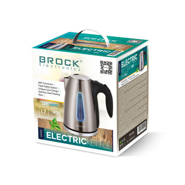 Kapazität: 1,7L | Power: 1800W | Material: Edelstahl | automatisches ausschalten bei erreichen des Siedepunktes | Wasserstandsanzeige | 360° Aufsatz | Triple-Safety-System | abnehmbarer und waschbarer Filter | 220-240V; 50/60Hz | EAN 4752131001451
