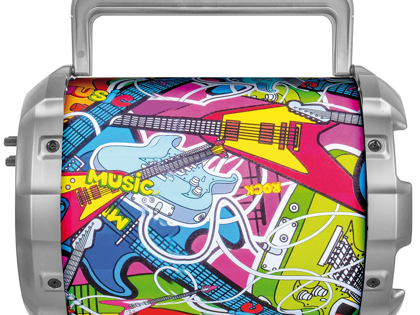 • Bedienelemente: Master-Lautstärke, Bass, Mikrofonlautstärke mit Karaoke-Funktion, Echo-Mikrofon